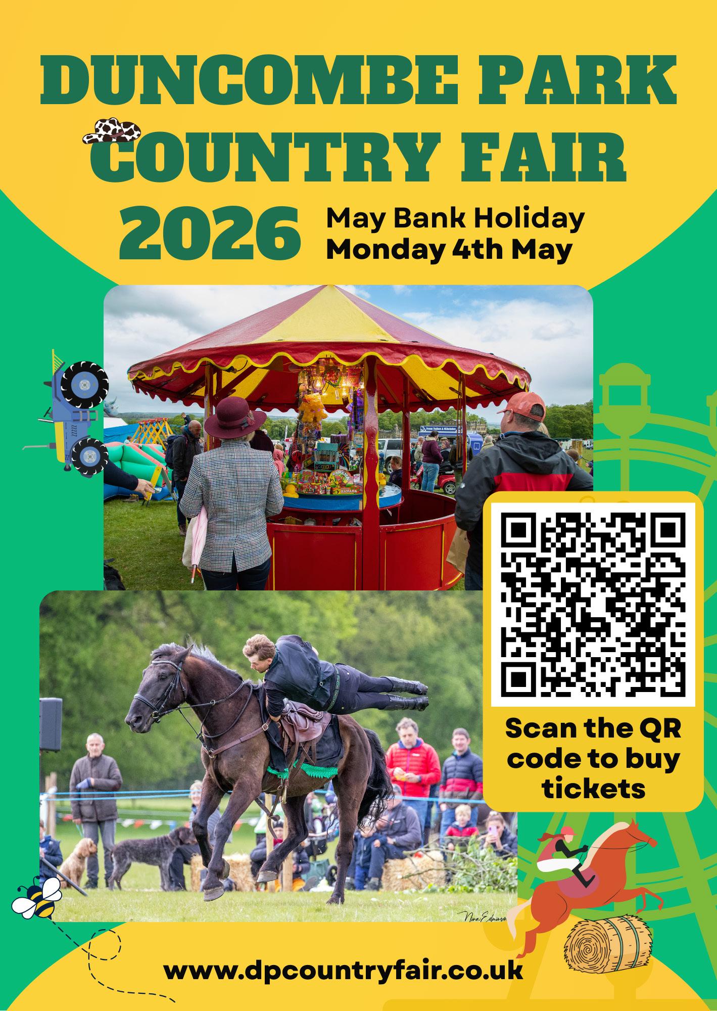 DUNCOMBE PARK COUNTRY FAIR, Duncombe Park, YO62 5EB. Enjoy a full day of show jumping, show classes, stalls, vintage & classic vehicle displays and more, running since 1982. Visit www. dpcountryfair.co.uk.
