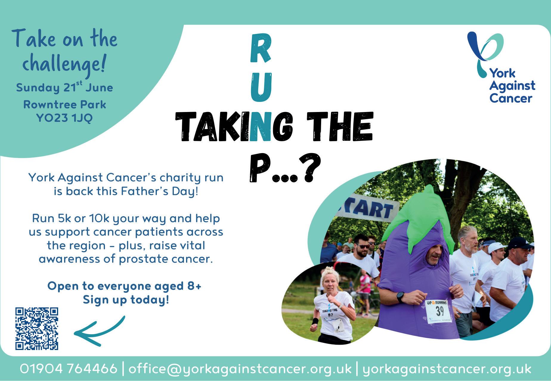 R U TAKING THE P…?, Rowntree Park, YO23 1JQ. 9.00am. Head down to the beautiful Rowntree Park this Father’s Day for a 5k or 10k run, in aid of crucial local charity, York Against Cancer. Visit www.register.enthuse.com/ps/ event/RUTakingtheP2026.