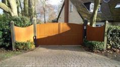 5. Where this track turns 90 degrees left, go through a wooden gate and take the signed fenced path with the drive left and field right. At a further gate, continue on the fenced path passing farm buildings left. At the next gate, join the access track keeping ahead with a hedge right and fence on left.