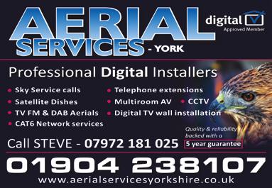 51 AERIALS // BUILDING & PROPERTY MAINTENANCE ADVERTISE HERE from as little as £64+ VAT call 01904 767881 • TV Aerials • Satellite Dishes • TV Extensions • TV Wall Brackets • Aerial Repairs • CCTV Systems TV AERIAL SPECIALISTS Aerius Installations 15% DISCOUNT QUOTE: AER22 ESTABLISHED OVER 40 YEARS Engineers based in York 0800 8044077 / 07711 796985 Call today on: Call: 01904 799154 /07725 574860 Website: www.apmcontractsyork.com We provide the following service Extensions, Garage conversions, Kitchen's, Bathrooms/Wetrooms, Windows and doors, GRP roofing Call: 01904 799154 /07725 574860 Website: www.apmcontractsyork.com We provide the following service Extensions, Garage conversions, Kitchen's, Bathrooms/Wetrooms, Windows and doors, GRP roofing Call: 01904 799154 /07725 574860 Website: www.apmcontractsyork.com service conversions, Kitchen's, Windows and doors, Call: 01904 799154 /07725 574860 Website: www.apmcontractsyork.com We provide the following service Extensions, Garage conversions, Kitchen's, Bathrooms/Wetrooms, Windows and doors, GRP roofing M.B BUILDING IN YORK FOR OVER 25 YEARS! City & Guilds Qualified Tradesmen • Extensions • Brickwork • Loft Conversions • Garages • Alterations & Repairs For a free quote call: 01904 337756 07887 986072 www.mbaileybuilders.co.uk LTD Builders M.B Builders BUILDING IN YORK FOR OVER YEARS! ADDERWORKS