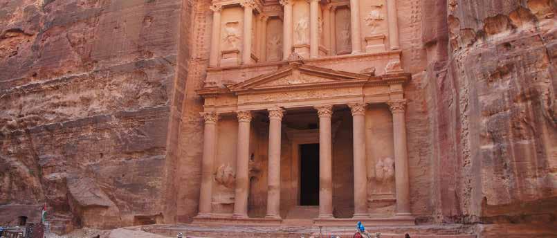 Whether as part of an escorted tour or with a private driver, as you head south towards Petra, visit Mount Nebo, one of the most revered holy sites of Jordan, where Moses is said to have stood and seen before him the Promised Land. As you reach Madaba, visit the Greek Orthodox Church of St George where you can see the mosaic map depicting the Holy Land. As you continue on the King’s Highway stop at the 12thcentury crusader fortress, Shobak. In the early evening, you arrive at Petra, one of the New Seven Wonders of the World.