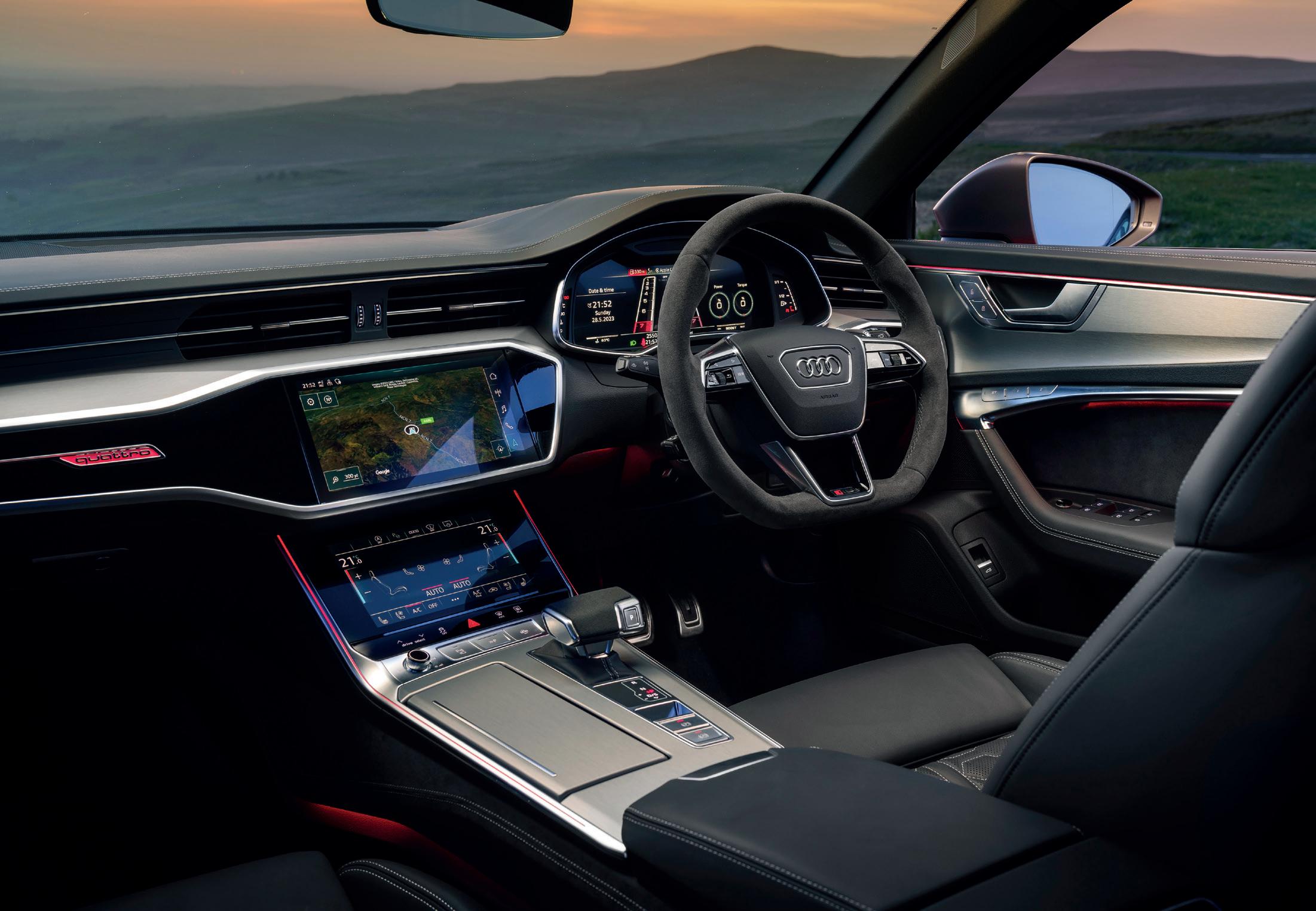 The 'performance' level RS 6 is now the standard in the UK market. As a result, there has been an uplift in the level of standard equipment across the range over the current offering. The entry performance models now benefit from a Bang & Olufsen Premium Sound System with 3D sound, Park Assist Pack with park assist plus, Head-up Display, 360-degree cameras and 22-inch wheels in matt grey. Visually, the exterior style package in matt grey is also now standard, while the RS sport exhaust comes finished in gloss black, along with the Audi rings and badges. The RS design package in either red, blue or grey is now standard along with an Alcantara flat bottom steering wheel. The top speed limit has also increased to 174mph.