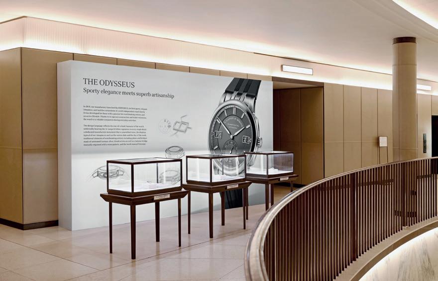 Embraced by the sweeping marble staircase of the gallerylike space, a giant replica of the recently launched Odysseus Chronograph literally makes a big impact. The five-metretall hallmark of the A. Lange & Söhne stand in Geneva gives connoisseurs and enthusiasts a deep insight into Lange’s world of watch mechanics and consummate craftsmanship. Just like the timepieces on display, the down to the smallest finesses exact reproduction is a reminder of the quest for perfection and the highest quality associated with A. Lange & Söhne.