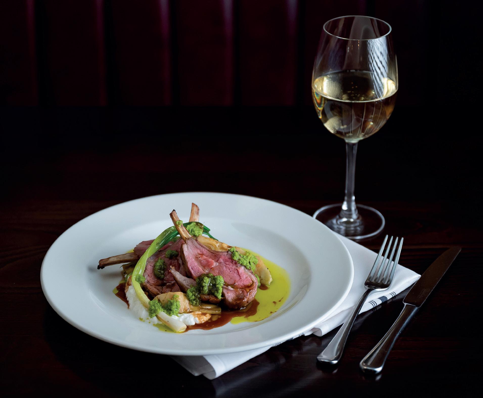 (accompany it with a truffle mac and cheese), menu options to start includes Pan Fried Scallops with pickled fennel, apple, crispy Parma ham and salsa Verde or Jones’ House Smoked Bacon Salad with stilton, baby spinach and mushrooms. A must try for mains is the Tamworth Pork Chop cooked on the Josper grill with paprika & honey glaze, green apple, radish & baby spinach salad or Whole Grilled Sea Bass with cherry tomatoes and rocket salad and yellow tomato chutney. To finish, top it off with a selection of English cheeses from the cheeseboard.