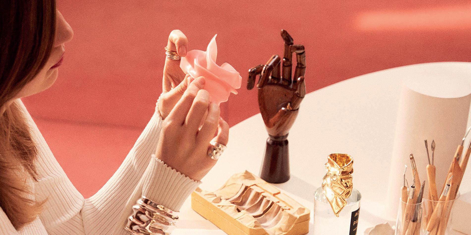 The Luce di Rosa experience is further enhanced by two exquisite objects: the Luce Di Rosa Jewel Masterpiece Edition and Tray, created by French jewellery designer Annelise Michelson. The gold-plated brass Jewel Masterpiece Edition features a sculptural bottle cap inspired by the flowing movement of fabric, echoing the designer’s renowned Drapé collection. This cap, which captures the graceful folds of drapery in motion, creates a striking visual contrast, embodying the fragrance’s dynamic and luminous nature.