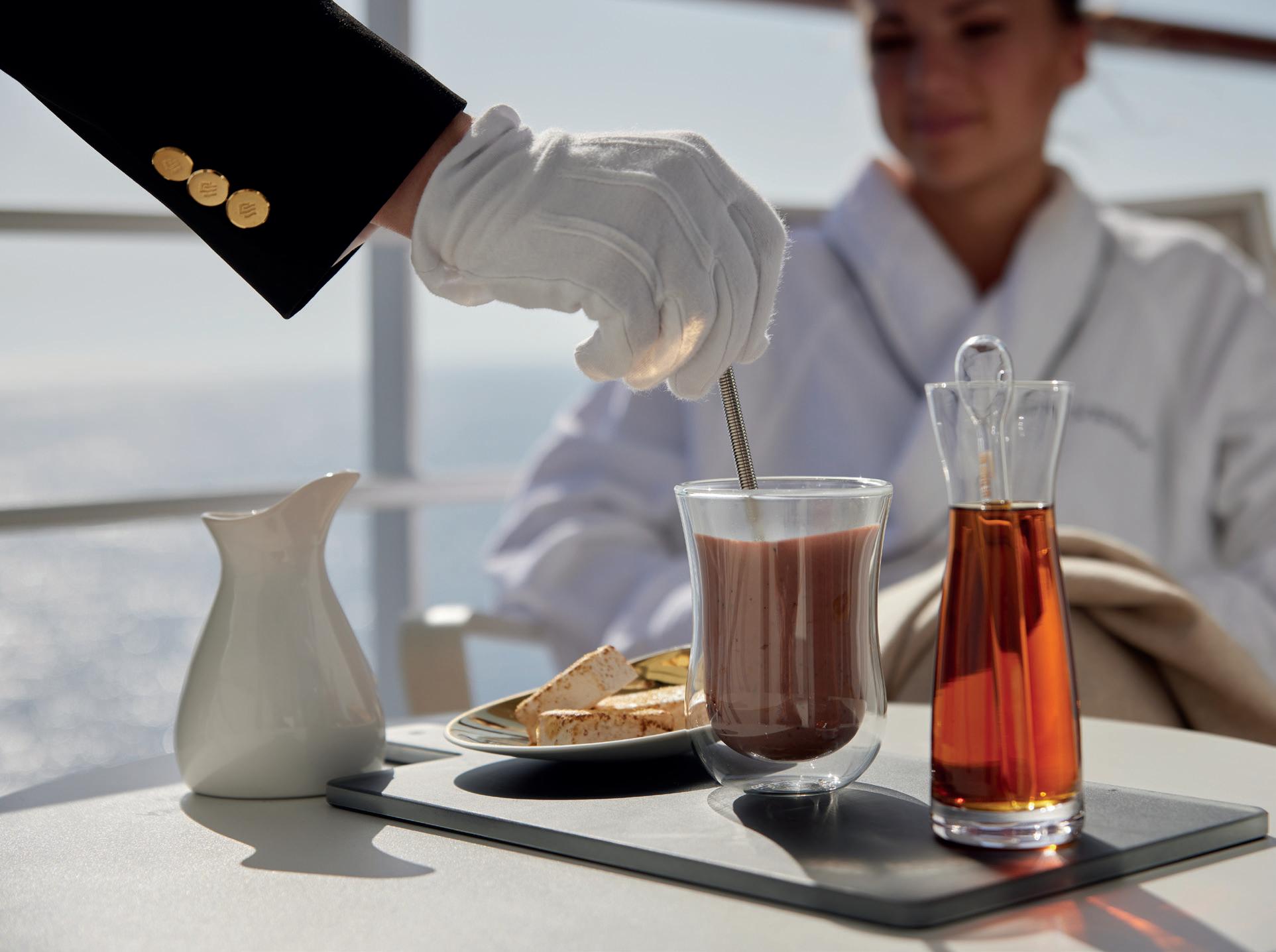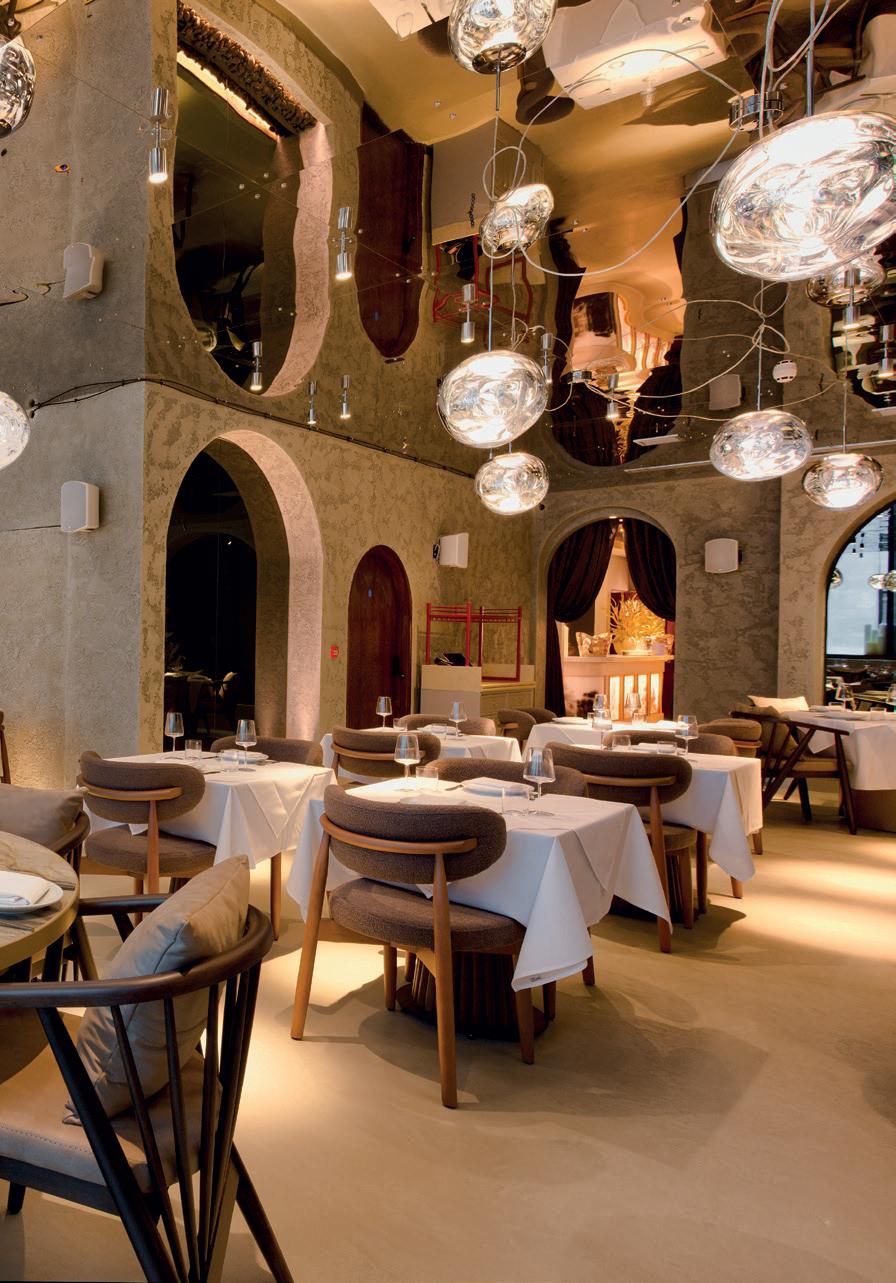 dipped in sugar, and Tom's favourite childhood fruit salad chew sweets. Prepared in the open kitchen, the intimate setting further enhances the personal experience, providing the ultimate lesson in quiet luxury, fine dining.