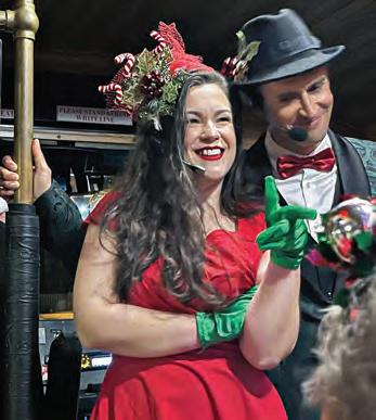 Trolley Troubadours Olivia Turpening and Austin Nichols entertain guests on Discover Sarasota Tours’ Christmas Carol Trolley.