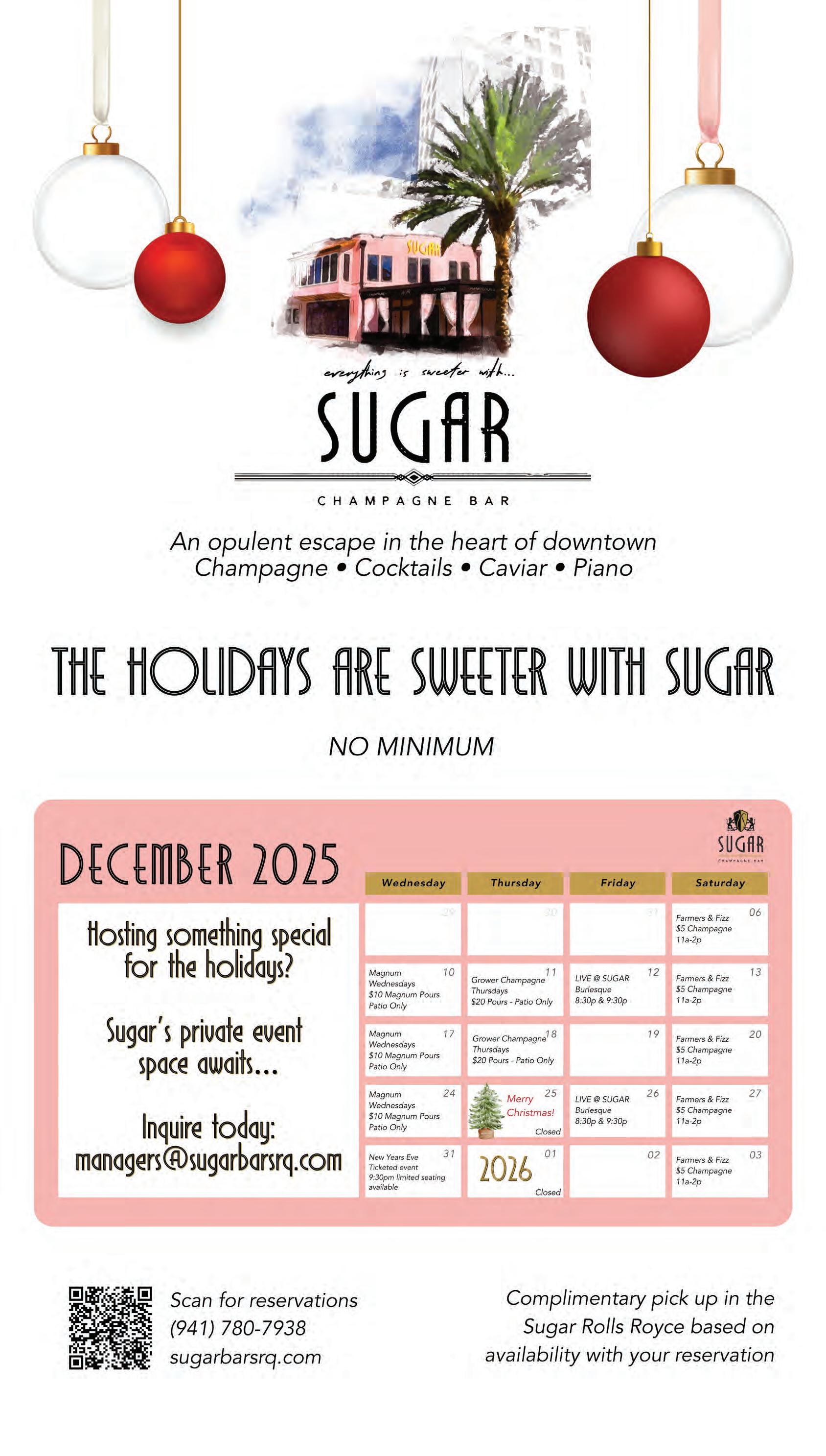 Superstar aerialist Nik Wallenda’s “Wonderland: Believe” circus may grab headlines, but it’s hard to beat the Sailor Circus Holiday Show for heart and hope. If you’re new to Sarasota, you might expect the Sailor Circus to feature a nautical theme. But you’d be wrong. Dubbed “The Greatest Little Show on Earth,” the Sailor Circus shares its name with the sports teams of Sarasota High School. Run by the nonprofit Circus Arts Conservatory, the Sailor Circus is the nation’s longestrunning youth circus, with 76 years of training to its credit. See young circus artists ages 6-18 demonstrate their acrobatic skills and gain confidence that leads to success in other arenas.