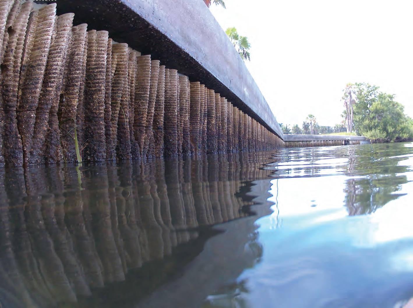 Barnacles are anchoring, seaweed is growing and small fish are sheltering under the concrete panels that were affixed to 300 feet of seawall at Bayfront Park.