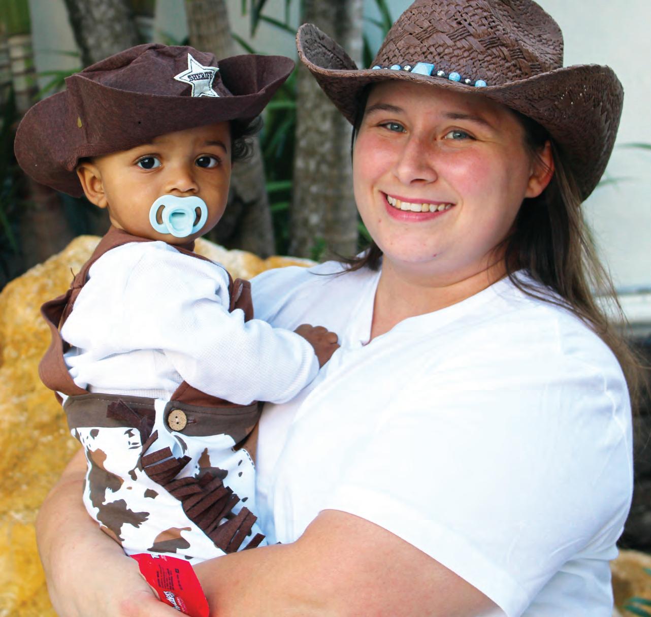 Tiffany Ranieri and 10-month-old Eli White patrol for mischief-makers during his first time trick-or-treating at Fright Night on St. Armands Circle.
