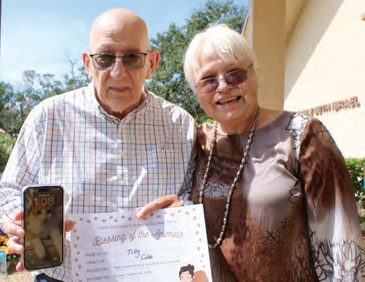 Even though Tilly the orange tabby isn’t a big fan of crowds, Terry Cobb and Holly Bruce were glad to still get a pet blessing.