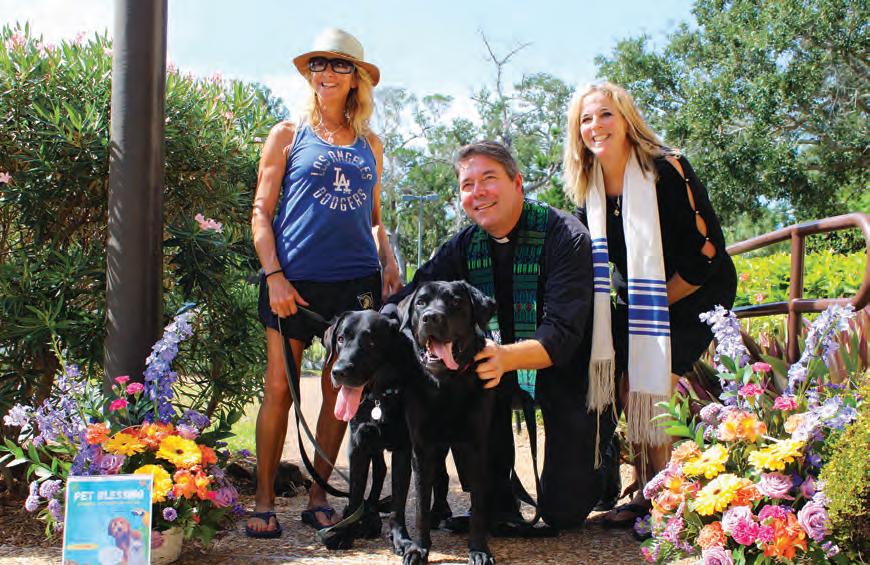 Diane Weisman brings her black Labrador retrievers to join an interfaith pet blessing from the Rev. David Marshall of All Angels by the Sea Episcopal Church and Rabbi Jessica Spitalnic Mates of Temple Beth Israel.