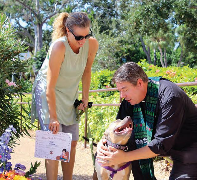 All Angels by the Sea Episcopal Church the Rev. David Marshall gives Skyler the pitbull mix some extra cuddles at an interfaith pet blessing Suzy Brennen took her dog to on Oct. 26 at Temple Beth Israel.