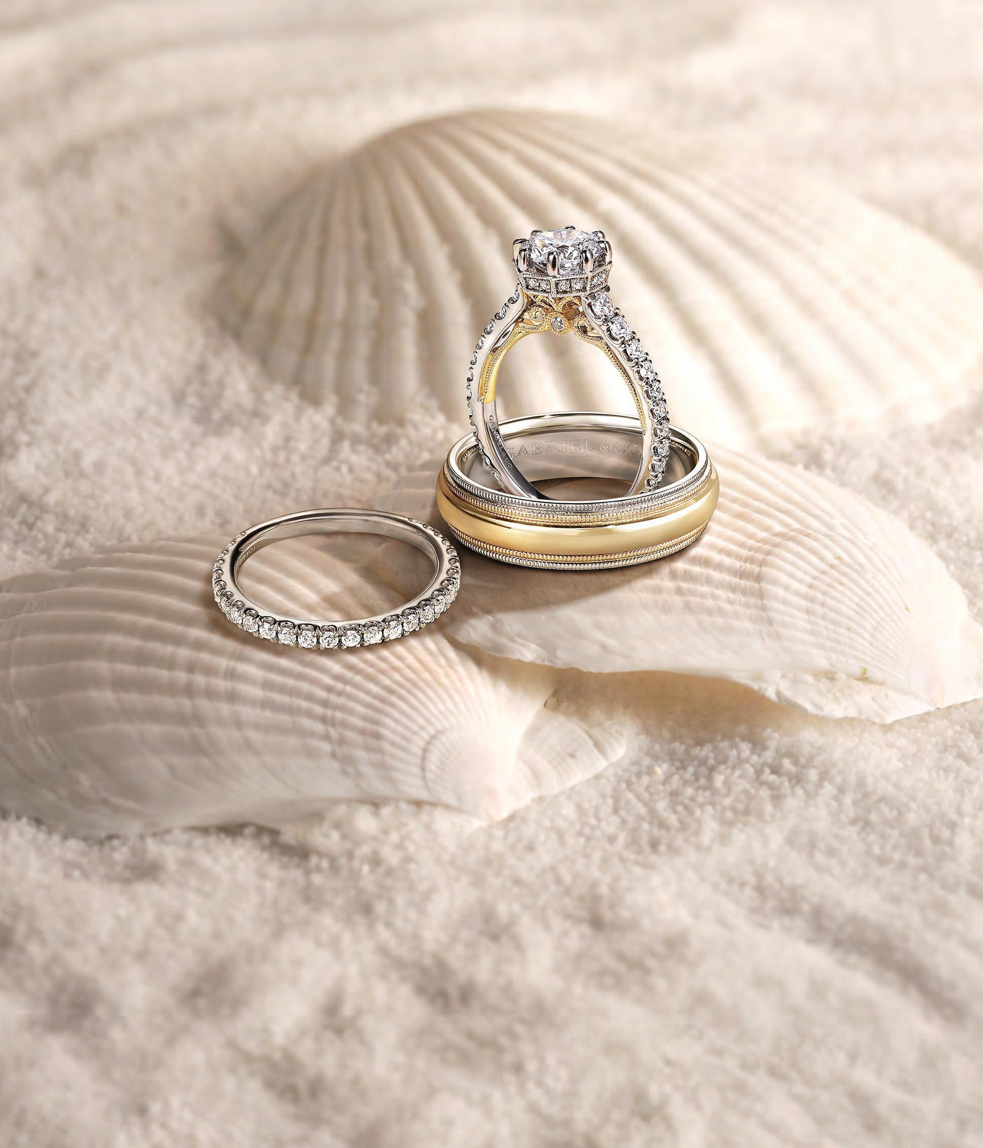 Vintage-Inspired Engagement Ring And Matching Wedding Band Crafted In 14k White And Yellow Gold BARTLETTJEWELERS CREEKWOOD CROSSING, 1-75 & S.R 70 BRADENTON, FL BARTLETTJEWELERS.COM | 941-751-6600 396726-1