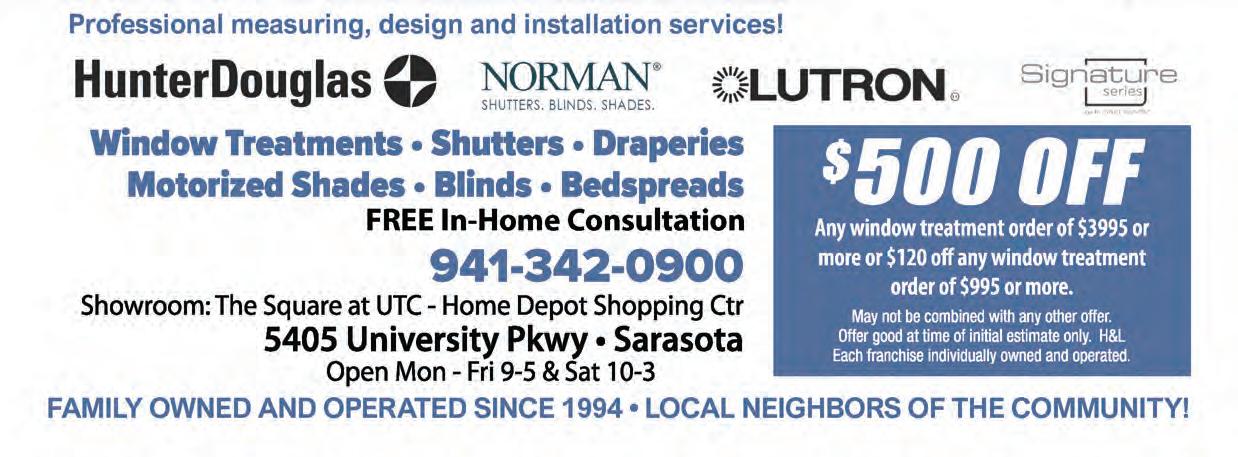 $500 OFF any order of $3,995 or more or $120 off any order of $995 or more Not valid with any other offer. Present coupon after estimate is given. HM0423 Schedule a FREE in-home consultation today to transform your home and garage into the place of your dreams! CALL NOW! 941-328-8989 PremierGarage.com | TailoredCloset.com CUSTOM CLOSET SYSTEMS | HOME OFFICES | LAUNDRIES | PANTRIES CUSTOM GARAGE STORAGE | WORLD’S FINEST GARAGE FLOORING CUSTOM CLOSET SYSTEMS • All sizes, many styles, 100s of colors to choose from WORLD’S FINEST GARAGE FLOORS 100s of colors to choose from CUSTOM GARAGE CABINETS & STORAGE 100’s OF 5 STAR REVIEWS 390797-1