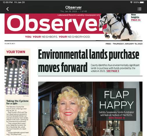 Read Print DIGITALLY! Get our e-Newspaper on your laptop, smartphone or tablet all in our new, easy-to-use app. Scroll through the pages of the paper on any device, and take us with you, wherever you go. NEW APP! Your News. Your New Way. Have questions? Call 941-366-3468, ext. 320 or email: customersupport@yourobserver.com Subscribe Now! YourObserver.com/subscribe SPECIAL OFFER FOR OUR LWR LIFE READERS ONLY 99¢ Cancel Anytime FIRST MONTH