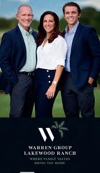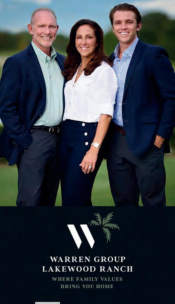 Your Lakewood Ranch Real Estate Experts for 20 Years COLDWELL BANKER REALTY • Top 1% of Agents in Sarasota & Manatee Counties • Members of Coldwell Banker’s Global Luxury Division • Top 7% of Coldwell Banker Agents Worldwide • Certified Luxury Home Marketing Specialists We felt we were never alone and were being treated as if we were family. We can’t thank Julie and Pat enough and highly recommend them to anyone buying or selling a home in Lakewood Ranch. “ WHY THE WARREN GROUP? – Gwen and Jeff V PAT, JULIE & PATRICK WARREN Real Estate Advisors, Realtors Coldwell Banker Residential Real Estate 8334 Market Street, Lakewood Ranch, FL C: 941.350.7044 C: 941.350.7439 C: 941.400.4436 O: 941.907.1033 www.WarrenGroupSarasota.com Pat.Warren@CBRealty.com Julie.Warren@CBRealty.com Patrick.Warren@CBRealty.com