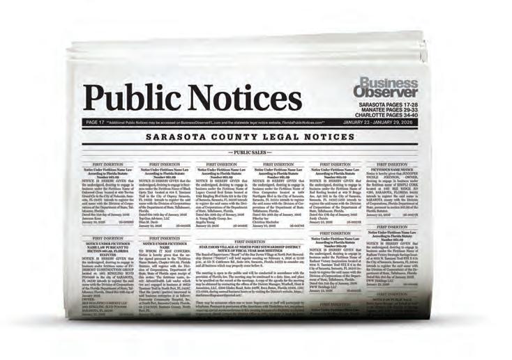 *It is the responsibility of the party placing any ad for publication in the Sarasota and Siesta Key Observer to meet all applicable legal requirements in connection with the ad such as compliance with towncodes in first obtaining an occupational license for business, permitted home occupation, or residential rental property.