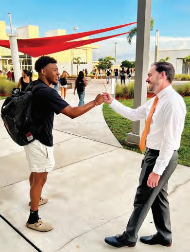 Ryan Chase greets senior Daniel Sanchez.
