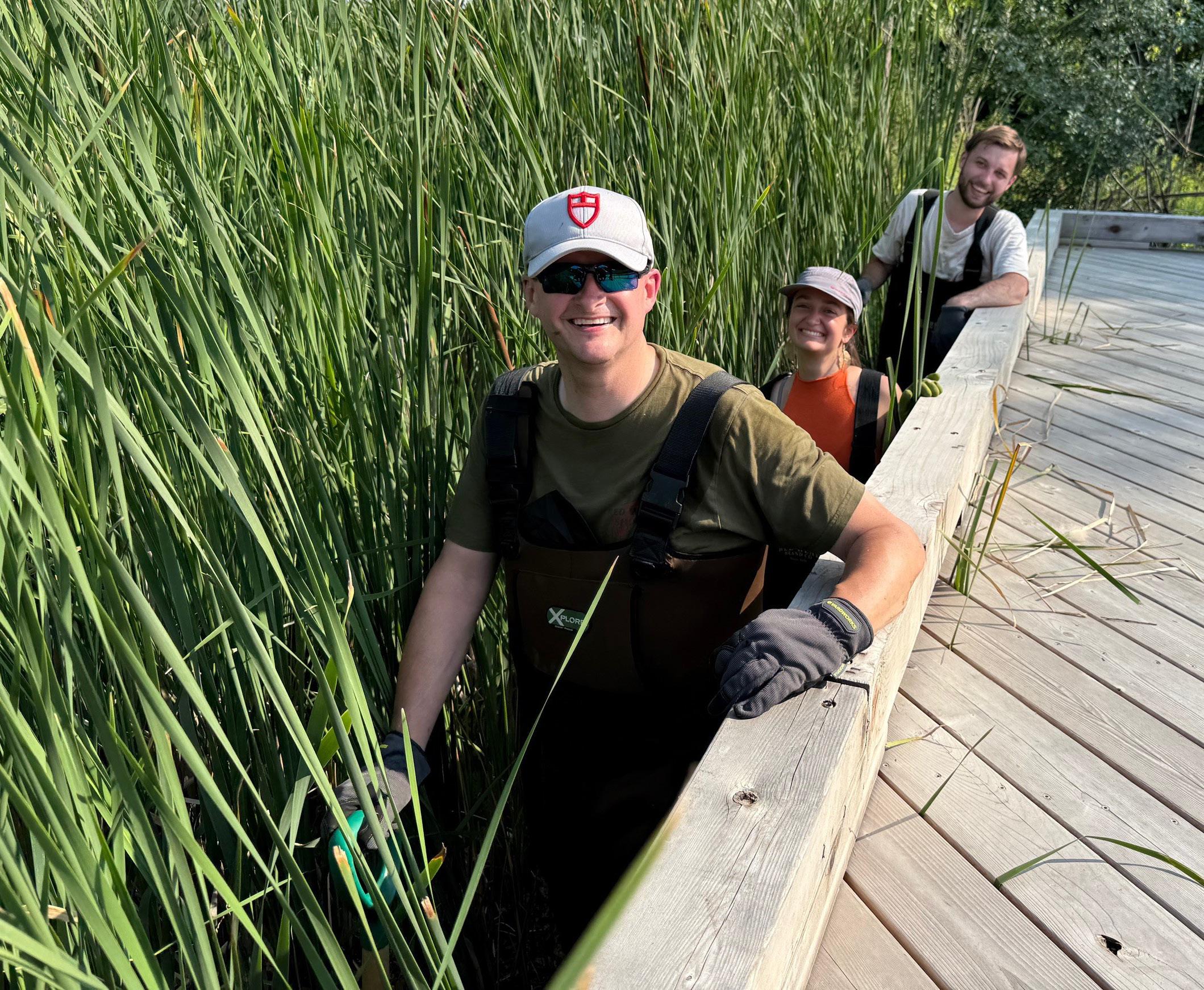 Stanistreet and TRC conservation volunteers work inside the MacEwan Pond