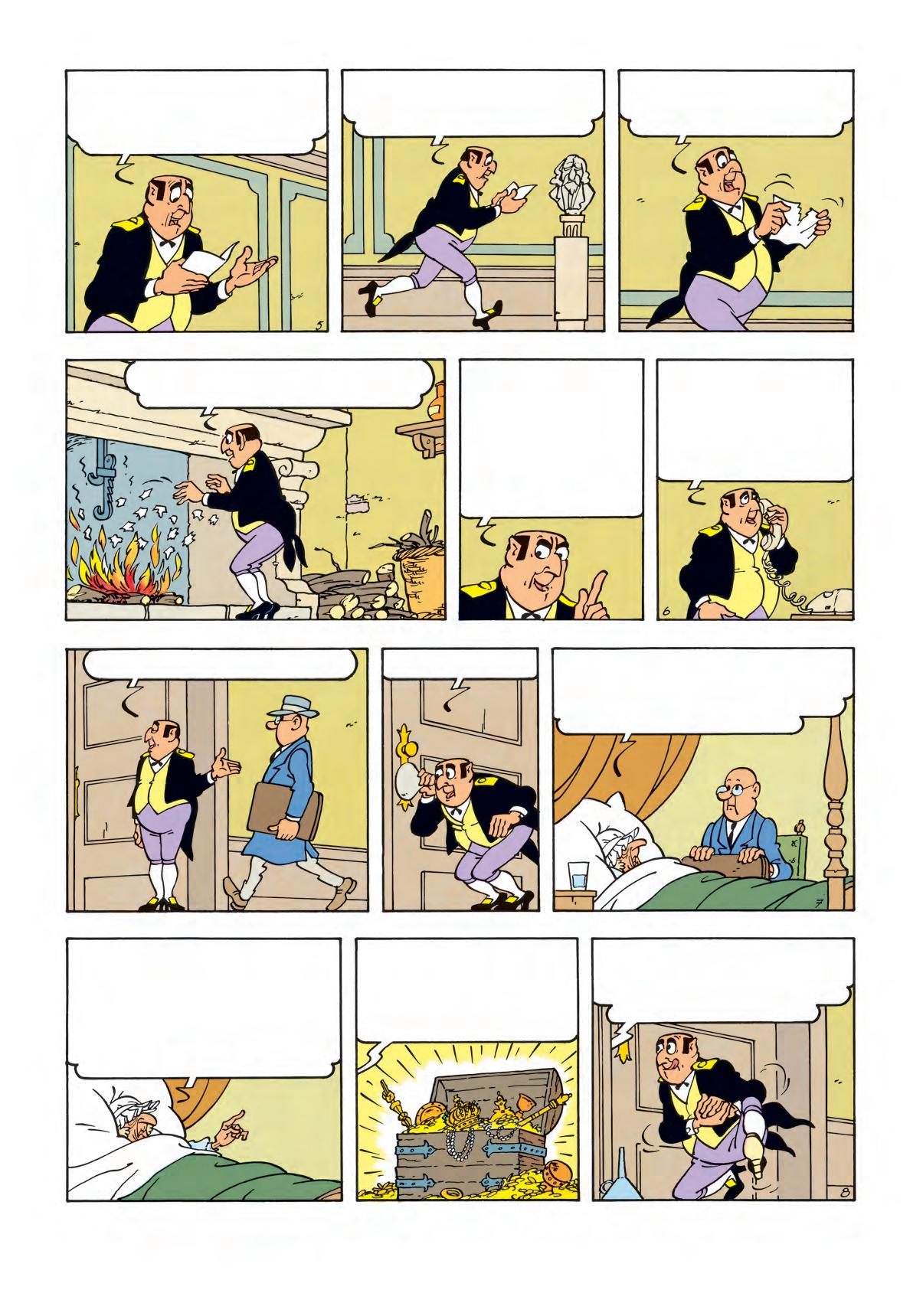 De notaris laat ik komen. Hij moet het testament opstellen en ik zal mijn oortjes spitsen. Want er moet hier ergens een schat verborgen liggen!