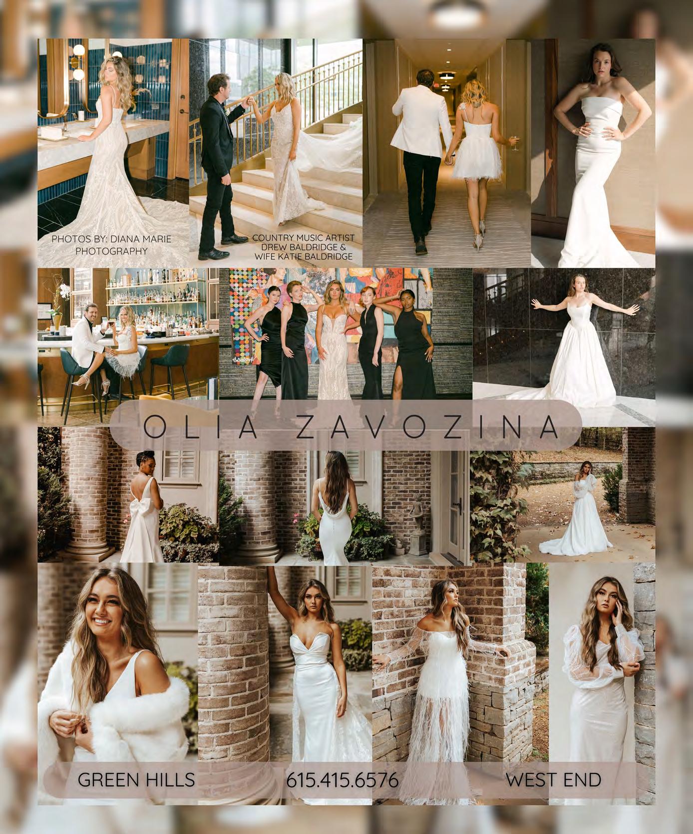 nternationally celebrated designer Olia Zavozina is renowned for her exceptional talent in creating bespoke couture wedding gowns and breathtaking red-carpet looks. For nearly two decades, her flagship boutique in Green Hills has been a trusted destination for brides seeking elegance and sophistication.