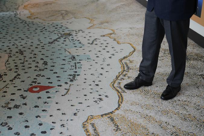 A carpet map at the Maritime Museum shows how Victoria Harbour has narrowed dramatically.