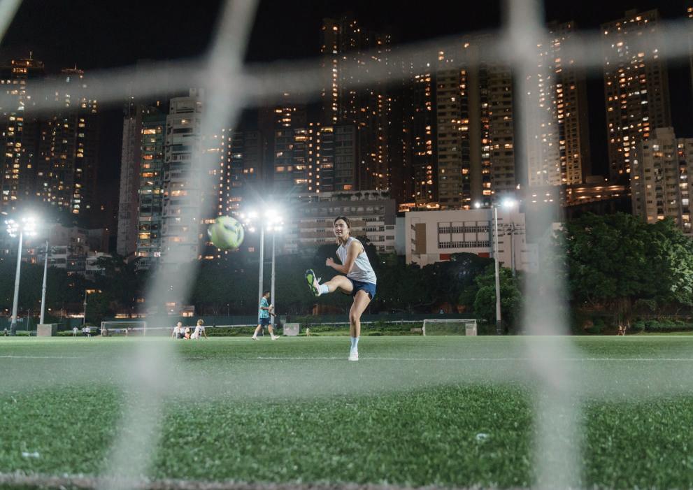 曾經參與電視台的綜藝節目,並因演出不同 影視作品而被大眾認識的植詠珊(Cathy), 做過體育記者,也做過大型運動比賽主持, 而在芸芸眾多面向之中,最喜歡的卻是「足球 員」這個身分。2022年開始接觸足球,繼而 加入本地女子足球隊征戰丙組及乙組聯賽, 這項運動自此成為Cathy生活中不可或缺的 部分,即使曾經面對十字韌帶斷裂的傷患,也 無阻她在正職以外的公餘時間,每星期持續 不斷練習,只為一圓「踢上甲組」的足球夢。
