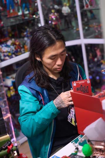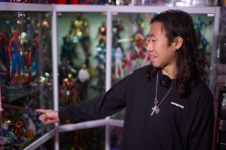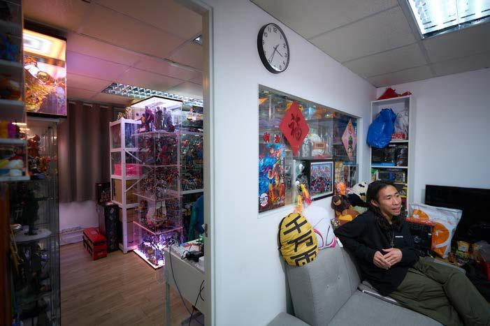獨處空間放下煩惱 自小喜歡收藏玩具的潮彤,經常都會在社交平台分享 心頭好,幪面超人、超級彈珠人、 Marvel系列、高達模 型等等,通通都可在他的「玩具城」裡找到。決心租倉 以放置家中收藏,潮彤說始於疫情,直到後來買了更 多玩具,加上工作需要,索性搬到更大的空間安放它 們,成為了現在的「玩具城」。「小時候我喜歡收藏模 型,也很喜歡超合金機械人,尤其那些可以合體的戰 隊系列,那些拿在手中有重量的,例如 Iro n Ma n,自己 亦很有感覺。疫情期間,沒甚麼地方可去,剛好那時候 的倉租較便宜,就想到以此擺放家中玩具,後來不知 不覺愈買愈多,既然自己本身開設製作公司,不如就 將玩具與公司兩個倉結合,好讓自己繼續收藏。」