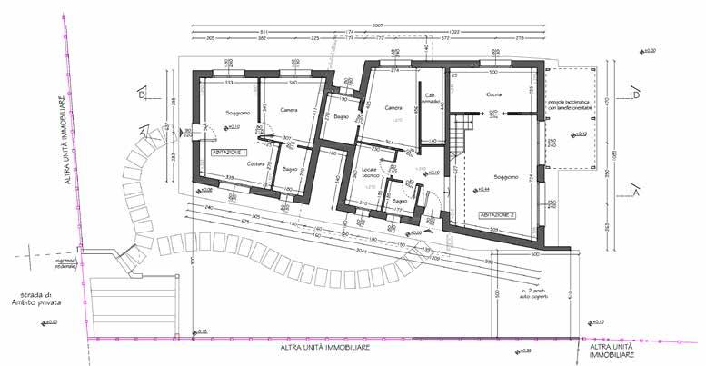 Al primo progetto di ristrutturazione e riqualificazione energetica dell’edificio si aggiunge quello degli spazi esterni, con la piscina inserita in una fascia del giardino. Viene richiesto che questa non sia mostrata, per conservare le essenze secolari della macchia mediterranea presenti nella parte più esposta e panoramica.