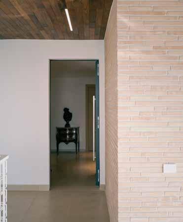 Realizzati in una coloritura specifica per il progetto, si accompagnano al legno usato per il soffitto dell’aggetto e alla pietra malaga naturale scelta per le pavimentazioni.