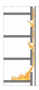 Se sulle facciate sono presenti cavità verticali, come nel caso di facciate ventilate, quelle possono diventare vie preferenziali di propagazione degli incendi lungo tutta la facciata.