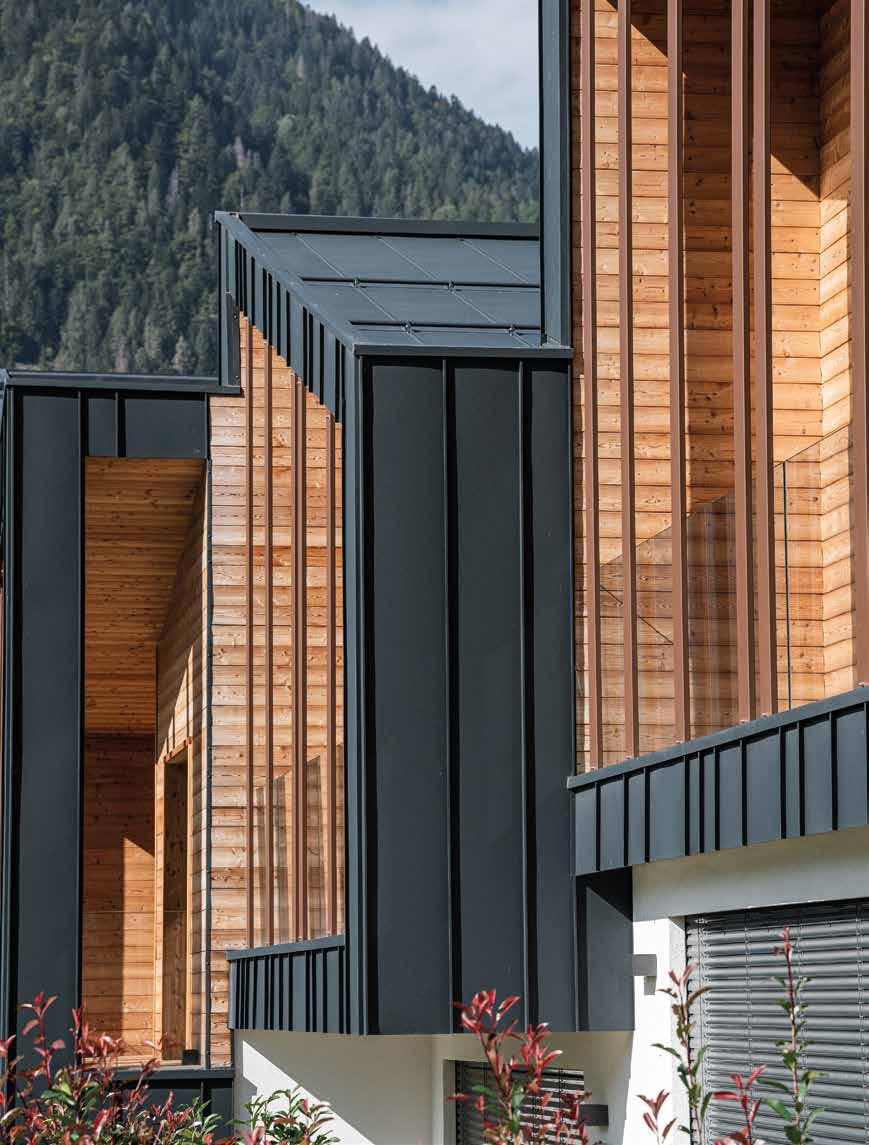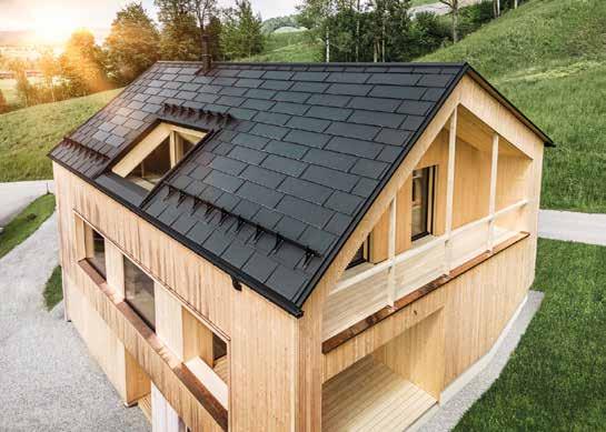 integrato, leggero e resistente agli agenti atmosferici e al vento. La tegola fotovoltaica è compatibile al 100% con il sistema completo Prefa: si integra nella copertura e si abbina perfettamente con i sistemi tegola R.16 e pannello FX.12 e accessori dell’azienda, creando un sistema coordinato, coerente e ricercato a livello estetico. Le tegole fotovoltaiche, made in Austria secondo elevati standard qualitativi, sono disponibili nella colorazione P.10 nero, una delle tonalità più amate e di tendenza. Ma su richiesta sono disponibili anche altre colorazioni.