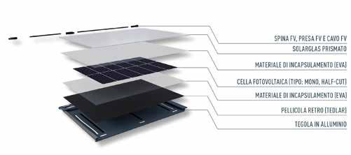 La tegola fotovoltaica è dotata di una tecnologia all’avanguardia a mezza-cella (tecnologia halfcut) per ottimizzare al massimo le prestazioni. I diodi di bypass integrati consentono di ottenere rendimenti e di continuare a produrre elettricità anche se i singoli pannelli sono parzialmente ombreggiati, come può accadere comunemente nel corso della giornata, a causa di nuvole, foglie o anche dalla neve.