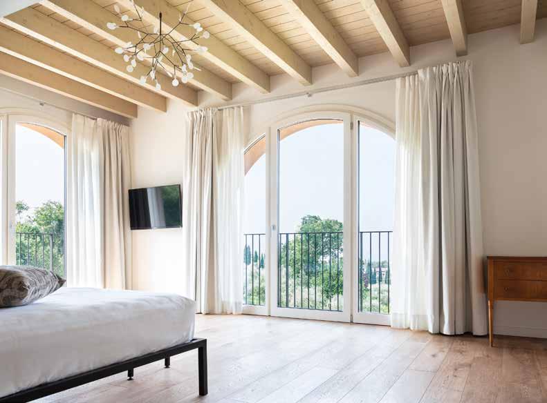 sibili per l’uso ricettivo, sia per i gruppi di amici che per le famiglie. Le soluzioni per porte sono firmate Eclisse, sia scorrevoli a scomparsa, sia a battente filomuro, delimitano e mettono in comunicazione diversi ambienti.