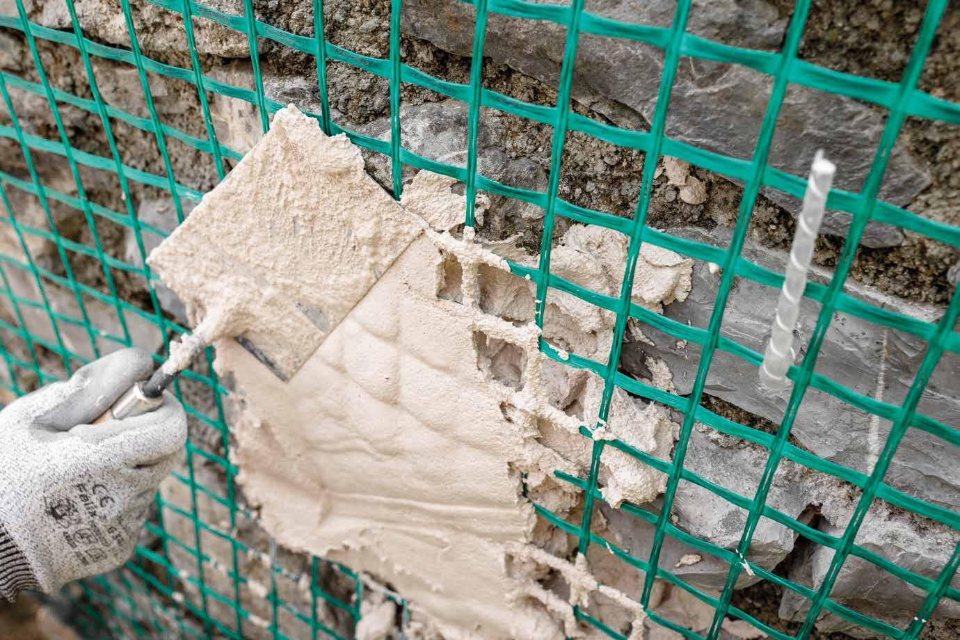 INTONACO DI FINITURA INTONACO DI FONDO. A SINISTRA, PAGLIA ISOLANTE