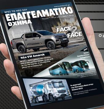 16 Δεν θα δοθεί άλλη παράταση για νομιμοποίηση ρυμουλκούμενων τρέιλερ, και όσοι δεν νομιμοποιήσουν τα εν λόγω οχήματα θα υποστούν μετά τις 2 Οκτωβρίου τις κυρώσεις του Κώδικα Οδικής Κυκλοφορίας. Αυτό δήλωσε η υφυπουργός Υποδομών και Μεταφορών, αρμόδια για τις μεταφορές, Χριστίνα Αλεξοπούλου, συμπληρώνοντας ότι τα ρυμουλκούμενα/τρέιλερ, εφόσον ήδη διαθέτουν ειδικό σημείωμα ρυμούλκησης (ΕΣΡ), που εκδόθηκε πριν από την 29η Δεκεμβρίου, τίθενται νομίμως σε κυκλοφορία. Για να τακτοποιηθεί η νομιμοποίηση, χρειάζεται οι ενδιαφερόμενοι να υποβάλουν αίτηση προς τις αρμόδιες υπηρεσίες Μεταφορών και Επικοινωνιών των Περιφερειών, η οποία θα συνοδεύεται από το ειδικό σημείωμα ρυμούλκησης (ΕΣΡ) του οχήματος και το παράβολο των 200 ευρώ. Η αίτηση υποβάλλεται με κάθε νόμιμο και πρόσφορο τρόπο, χωρίς να απαιτείται η παρουσία του ιδιοκτήτη του οχήματος. Με τη νέα νομοθετική διάταξη, του υπουργείου Μεταφορών, παρέχεται η δυνατότητα στους ιδιοκτήτες ρυμουλκούμενων/τρέιλερ, που είχαν παλαιότερα τεθεί νόμιμα σε κυκλοφορία με ειδικά σημειώματα ρυμούλκησης (Ε.Σ.Ρ.) και δεν είχαν εκδώσει στοιχεία κυκλοφορίας εντός της προβλεπόμενης προθεσμίας που προέβλεπε η υπ’ αρ. 2805/2021 υπουργική απόφαση (δηλαδή, μέχρι 29/12/2023), να εκδώσουν στοιχεία κυκλοφορίας (άδεια και πινακίδες), κατόπιν καταβολής παραβόλου, ύψους 200 ευρώ και εντός αποκλειστικής προθεσμίας πέντε μηνών, μετά τη δημοσίευσή της σε ΦΕΚ (2 Μαΐου 2024). Ως εκ τούτου πλέον τα τροχόσπιτα, τα τρέιλερ, οι μπαγκαζιέρες, καθώς και τα συγκεκριμένων τύπων γεωργικά μηχανήματα, υποχρεούνται να φέρουν τις δικές τους πινακίδες κυκλοφορίας και τη σχετική άδεια, ανεξάρτητα από τα κυρίως οχήματα από τα οποία έλκονται ενώ θα πρέπει να καλύπτονται και από ασφάλιση αστικής ευθύνης. Όχι άλλη παράταση στη νομιμοποίηση ρυμουλκούμενων 15 παραγωγή FIAA 2022: η EvoBus Ibérica της Daimler Buses στη Μαδρίτη HEvoBus Ibérica, ισπανική θυγατρική της Daimler Buses, παρουσίασε σημαντικές καινοτομίες στην FIAA 2022 στη Μαδρίτη, 18-22 Οκτωβρίου: το eCitaro, με τις ολοκαίνουργιες μπαταρίες NMC3. Το αμάξωμα OC 500 RF, το οποίο περιλαμβάνει νέα ηλεκτρονική αρχιτεκτονική με επίκεντρο την ασφάλεια και τη λειτουργικότητα, ήταν επίσης εκεί. Η Setra παρούσα και αυτή, με τα οχήματά της νέας γενιάς ComfortClass και TopClass, που ενσωματώνουν καινοτομίες όσον αφορά την ασφάλεια, τις επιδόσεις, την άνεση και τη σχεδίαση. Στην κατηγορία υπεραστικών λεωφορείων, παρουσιάστηκε το νέο υβριδικό Mercedes-Benz Intouro και το επαγγελματικό όχημα Setra S 416 LE. Όσον αφορά τις υπηρεσίες μετά την πώληση, οι OMNIplus και OMNIplus ON παρουσιάζουν σημαντικές βελτιώσεις όσον αφορά τη διαχείριση του στόλου, με το OMNIplus ON Uptime pro, τις ηλεκτρονικές πωλήσεις ανταλλακτικών και την επανάσταση που συνεπάγεται η δυνατότητα εκτύπωσης ανταλλακτικών με τρισδιάστατους εκτυπωτές. Επιπλέον, ανακοινώθηκε η νέα υπηρεσία ενοικίασης λεωφορείων που προσφέρεται από την EvoBus Ibérica: Mercedes-Benz Tourismo. Πρόκειται για μια νέα υπηρεσία ενοικίασης οχημάτων, που δίνει τη δυνατότητα στους μεταφορείς επιβατών να διαχειριστούν την περιστασιακή υψηλή ζήτηση με ευέλικτο τρόπο. Παρούσα και η Setra με τα ComfortClass και TopClass συνεργασία με υπηρεσίες ταχυμεταexpress και δεμάτων, καθώς κατασκευαστές αμαξωμάτων, απαιτήσεις για την επόμενη γενιά eSprinters, που θα τεθούν σε παραγωδεύτερο εξάμηνο του 2023 πρώΤσάρλεστον (Νότια Καρολίνα) συνέχεια στο Ντίσελντορφ και Ludwigsfelde, ορίστηκαν: «Έχουμε διάφορα μέτρα και θα 