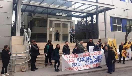 να φωνάζουν το σύνθημα «Κανένα σπίτι στα χέρια τραπεζίτη».