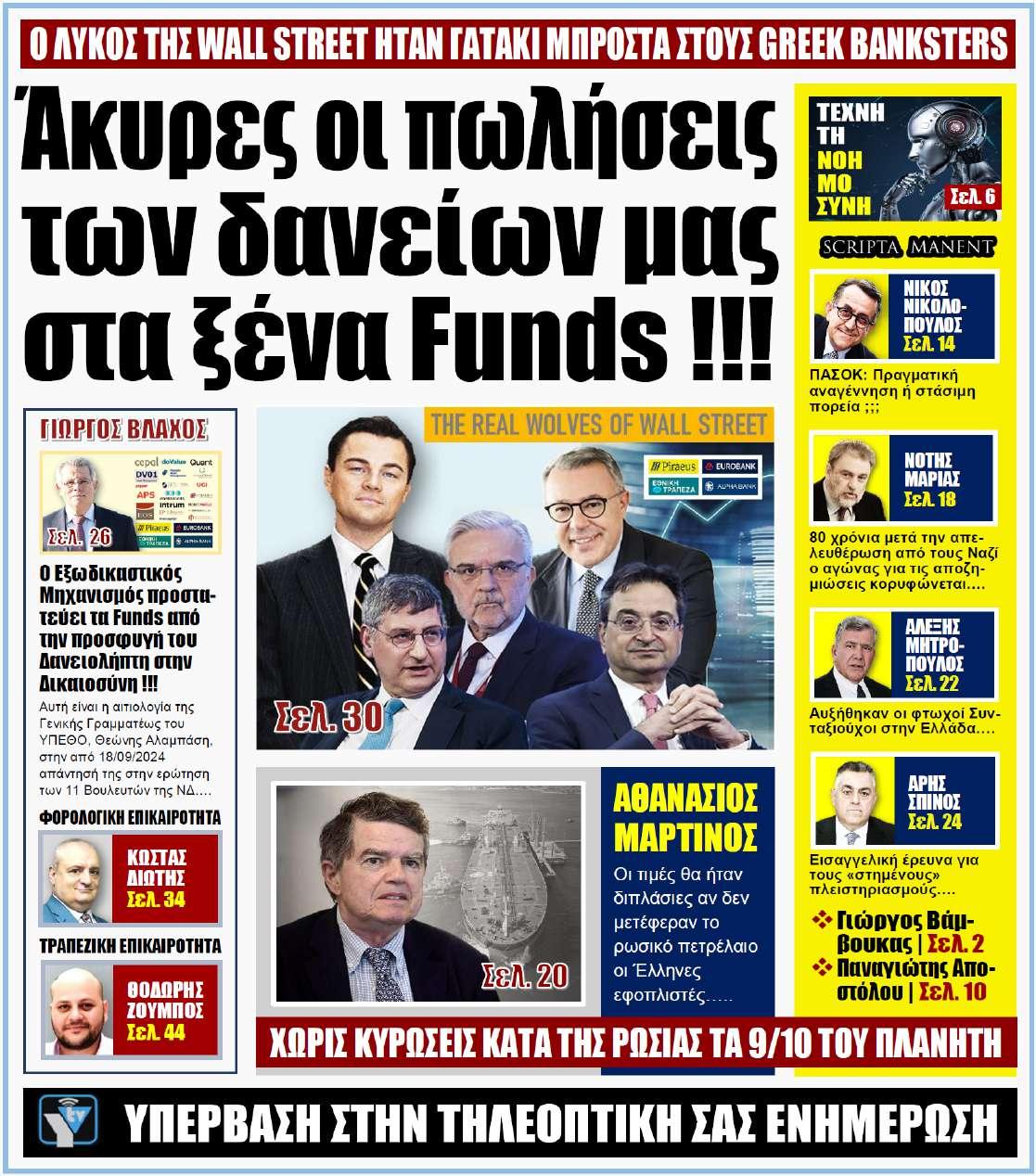 ΥΠΕΡΒΑΣΗ NEWS: ΜΙΘΡΙΔΑΤΙΣΜΟΣ ΤΩΝ ΕΛΛΗΝΩΝ | ΤΕΧΝΗΤΗ ΝΟΗΜΟΣΥΝΗ ΚΑΙ ΠΥΡΗΝΙΚΗ ΕΝΕΡΓΕΙΑ | «ΧΑΣΜΑ ΓΕΝΕΩΝ» ΧΩΡΙΖΕΙ ΜΗΤΣΟΤΑΚΗ ΜΕ ΚΑΡΑΜΑΝΛΗ – ΣΑΜΑΡΑ | ΤΟ ΠΑΣΟΚ ΣΕ ΕΣΩΚΟΜΜΑΤΙΚΟ ΣΤΑΥΡΟΔΡΟΜΙ: ΠΡΑΓΜΑΤΙΚΗ ΑΝΑΓΕΝΝΗΣΗ Η΄ ΕΣΩΚΟΜΜΑΤΙΚΟ ΣΤΑΥΡΟΔΡΟΜΙ; | 80 ΧΡΟΝΙΑ ΑΠΟ ΤΗΝ ΑΠΕΛΕΥΘΕΡΩΣΗ ΤΗΣ ΑΘΗΝΑΣ ΑΠΟ ΤΟΥΣ ΝΑΖΙ Ο ΑΓΩΝΑΣ ΓΙΑ ΤΙΣ ΓΕΡΜΑΝΙΚΕΣ ΑΠΟΖΗΜΙΩΣΕΙΣ ΚΟΡΥΦΩΝΕΤΑΙ | ΤΑ 9/10 ΤΟΥ ΠΛΑΝΗΤΗ ΔΕΝ ΕΠΕΒΑΛΑΝ ΚΥΡΩΣΕΙΣ ΣΤΗΝ ΡΩΣΙΑ | ΑΥΞΗΘΗΚΑΝ ΟΙ «ΦΤΩΧΟΙ ΣΥΝΤΑΞΙΟΥΧΟΙ» ΣΤΗΝ ΕΛΛΑΔΑ | ΕΙΣΑΓΓΕΛΙΚΗ ΕΡΕΥΝΑ ΓΙΑ «ΣΤΗΜΕΝΟΥΣ» ΠΛΕΙΣΤΗΡΙΑΣΜΟΥΣ – «ΕΓΚΕΦΑΛΟΣ» ΜΕΣΙΤΗΣ ΤΟΥ ΠΕΙΡΑΙΑ ΠΟΥ ΠΑΡΕΜΒΑΙΝΕΙ ΜΕ ΛΟΓΙΣΜΙΚΟ ΣΤΗΝ ΚΑΤΑΚΥΡΩΣΗ ΤΩΝ ΥΠΕΡΘΕΜΑΤΙΣΤΩΝ | ΚΥΒΕΡΝΗΤΙΚΗ ΟΜΟΛΟΓΙΑ ΣΟΚ: Ο ΝΟΜΟΣ ΓΙΑ ΤΙΣ ΡΥΘΜΙΣΕΙΣ ΠΡΟΣΤΑΤΕΥΕΙ ΤΑ FUNDS ΑΠΟ ΤΗΝ ΠΡΟΣΦΥΓΗ ΤΟΥ ΔΑΝΕΙΟΛΗΠΤΗ ΣΤΗΝ ΔΙΑΚΙΟΣΥΝΗ | ΑΚΥΡΕΣ ΟΛΕΣ ΟΙ ΣΥΜΒΑΣΕΙΣ ΠΩΛΗΣΗΣ ΚΑΙ ΜΕΤΑΒΙΒΑΣΗΣ ΤΩΝ ΔΑΝΕΙΩΝ ΜΑΣ ΣΤΑ ΞΕΝΑ FUNDS