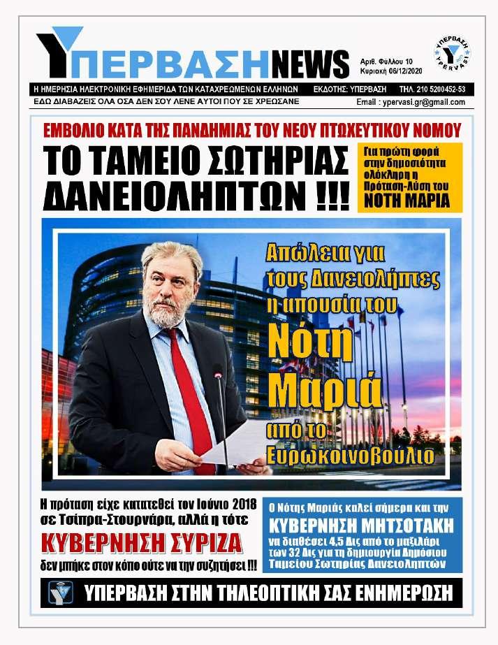 Αριθ. Φύλλου 258 Σ/Κ 26-27/11/2022 ΥΠΕΥΘΥΝΟΣ ΣΥΝΤΑΞΗΣ: Θοδωρής Ζούμπος ΥΠΕΥΘΥΝΟΣ ΕΚΔΟΣΗΣ : Κυριάκος Τόμπρας Η ΕΒΔΟΜΑΔΙΑΙΑ ΗΛΕΚΤΡΟΝΙΚΗ ΕΦΗΜΕΡΙΔΑ ΤΩΝ ΚΑΤΑΧΡΕΩΜΕΝΩΝ ΕΛΛΗΝΩΝ ΕΚΔΟΤΗΣ: ΥΠΕΡΒΑΣΗ ΤΗΛ. 210 5200452-62 ΕΔΩ ΔΙΑΒΑΖΕΙΣ ΟΛΑ ΟΣΑ ΔΕΝ ΣΟΥ ΛΕΝΕ ΑΥΤΟΙ ΠΟΥ ΣΕ ΧΡΕΩΣΑΝΕ Email : ypervasi.gr@gmail.com
