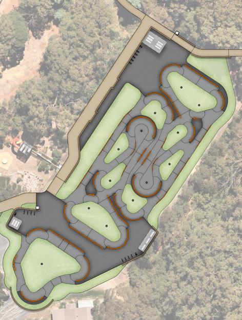THE PRINCIPLE AF THE PUMP TRACK LAYOUT ENSURES GREAT EVERYDAY USE THAT IS NOT COMPROMISED IN ANY WAY TO ACCOMMODATE AN EVENT READY TRACK. THE LAYOUT COULD ACCOMMODATE EVENTS OF VARYING SCALES FROM COMMUNITY EVENTS TO LARGE SCALE EVENTS IF DESIRED.