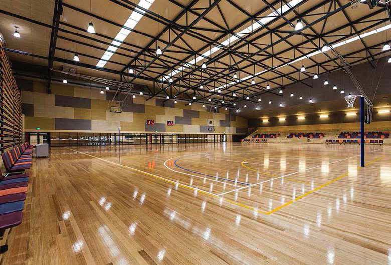 • Four multi-use indoor sport courts which meet all indoor sports specifications (netball specifications) for domestic competition.