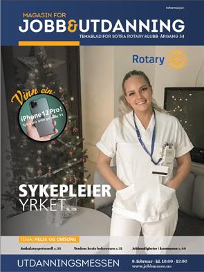 1 MAGASIN FOR JOBB & UTDANNING | 2023 MAGASIN FOR JOBB & UTDANNING | 2019 JOBB&UTDANNING TEMABLAD FOR SOTRA ROTARY KLUBB ÅRGANG 35 informasjon MAGASIN FOR UTDANNINGSMESSEN Vinn en: Vinn en: iPhone! Mer info på side 43 Tidspunkt for utdanningsmessen annonseres her: Yrkesmessa – Sotra Rotary | Facebook TEMA: FOKUS PÅ HELSEUTDANNING SYKEPLEIER S. 48 MOLEKYLÆRBIOLOG S. 18 HELSEFAGARBEIDER S. 13