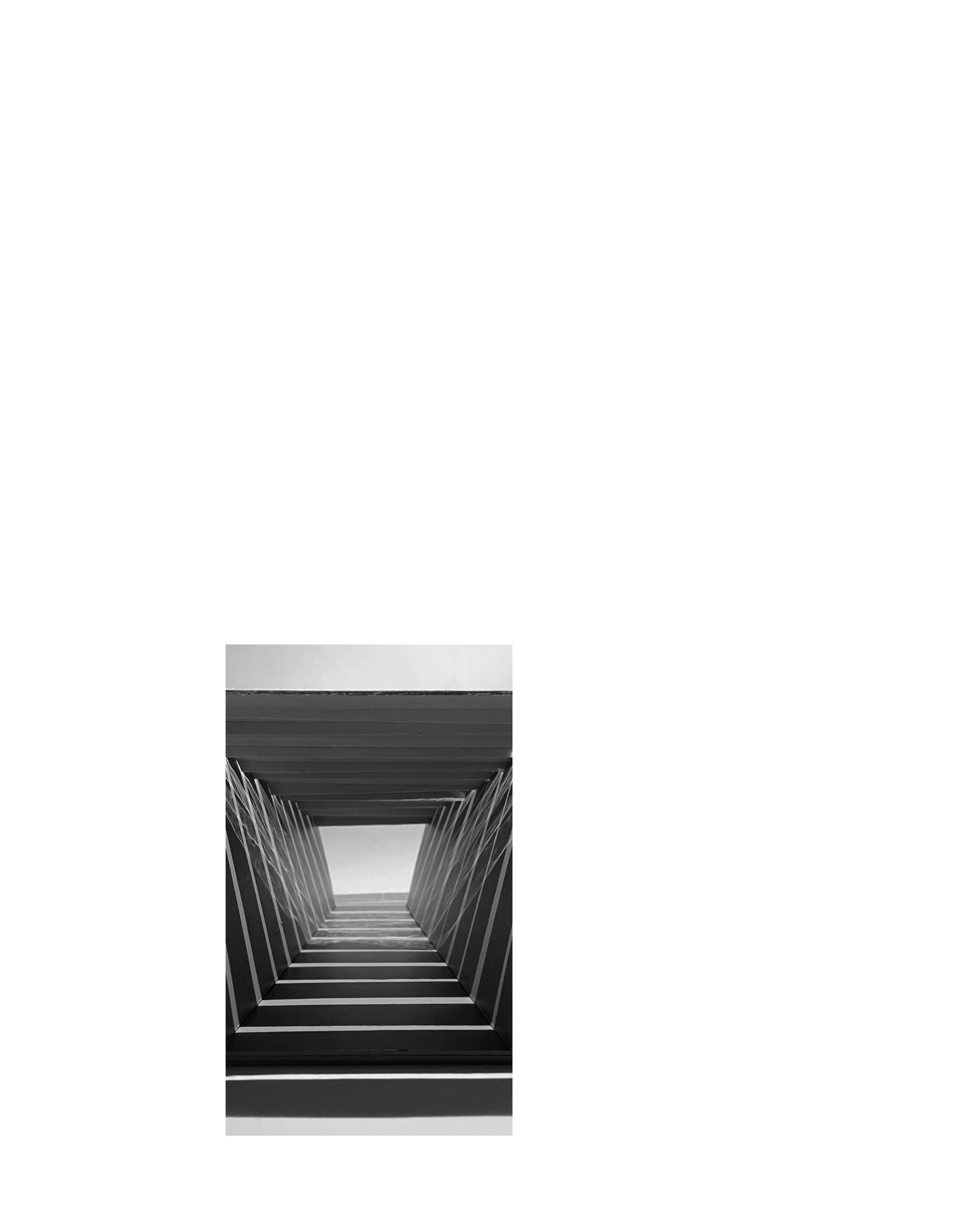 As light filters through mirrored film, reflections fragment and multiply the body. The space dissolves boundaries between interior and exterior, inviting curiosity while maintaining a sense of enclosure.