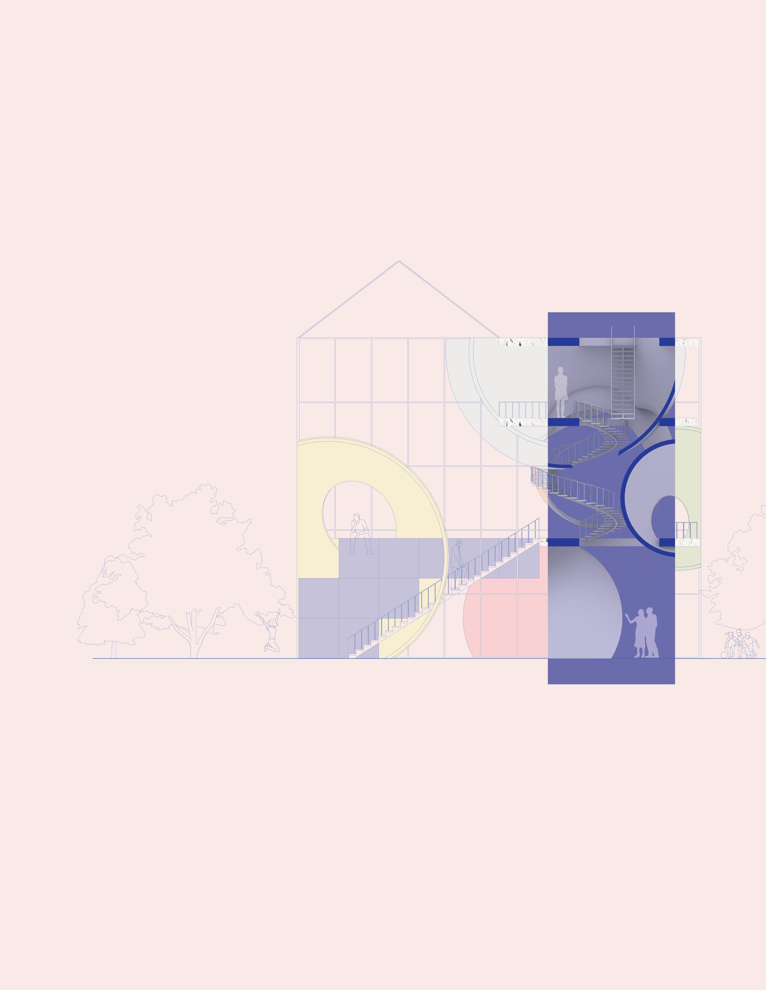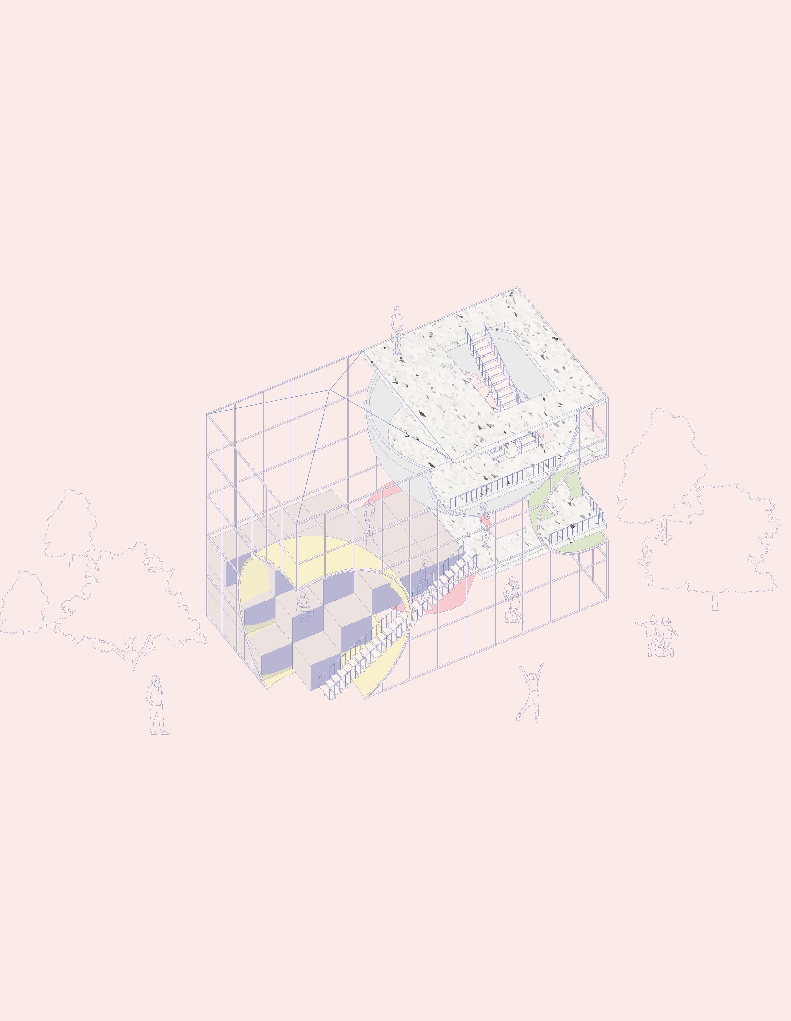 This project explores the intersection of public and private space through a layered geometric framework that fosters both community engagement and individual reflection. The design is inspired by the delicate balance between interaction and enclosure in urban environments, shaping spaces that collect, enclose, and entertain.