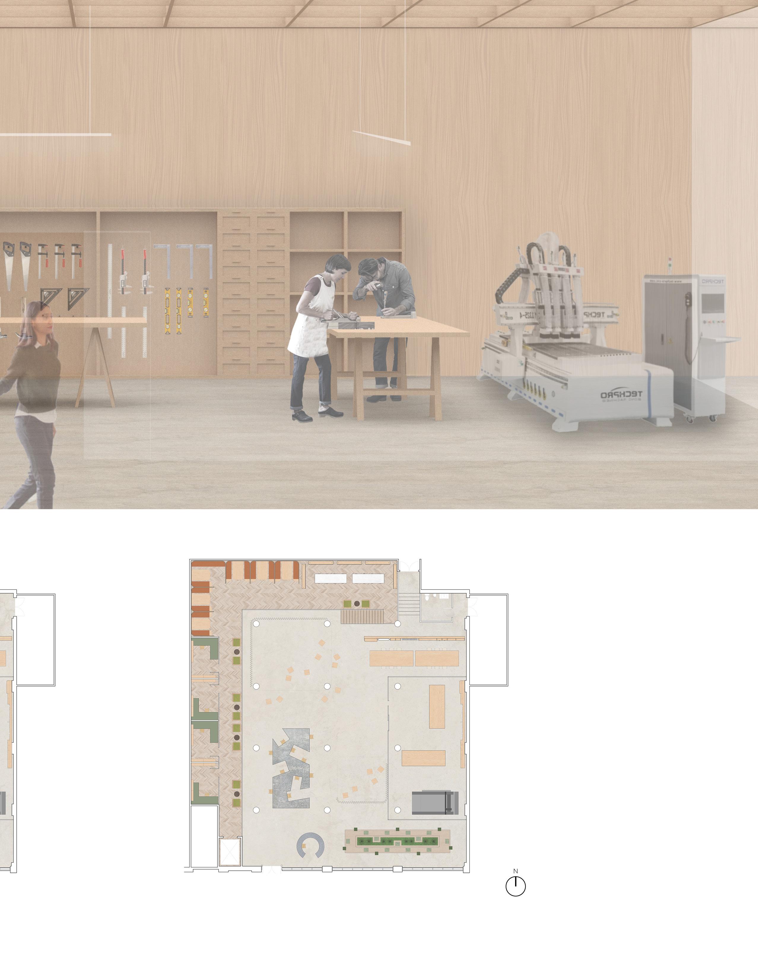 This project transforms the historic library model, once centered on books and silent reading, into an active civic infrastructure for making and collective production. Archives expand into fabrication labs, reading rooms evolve into exhibition and workshop spaces, and studio and technology areas become visible extensions of knowledge.