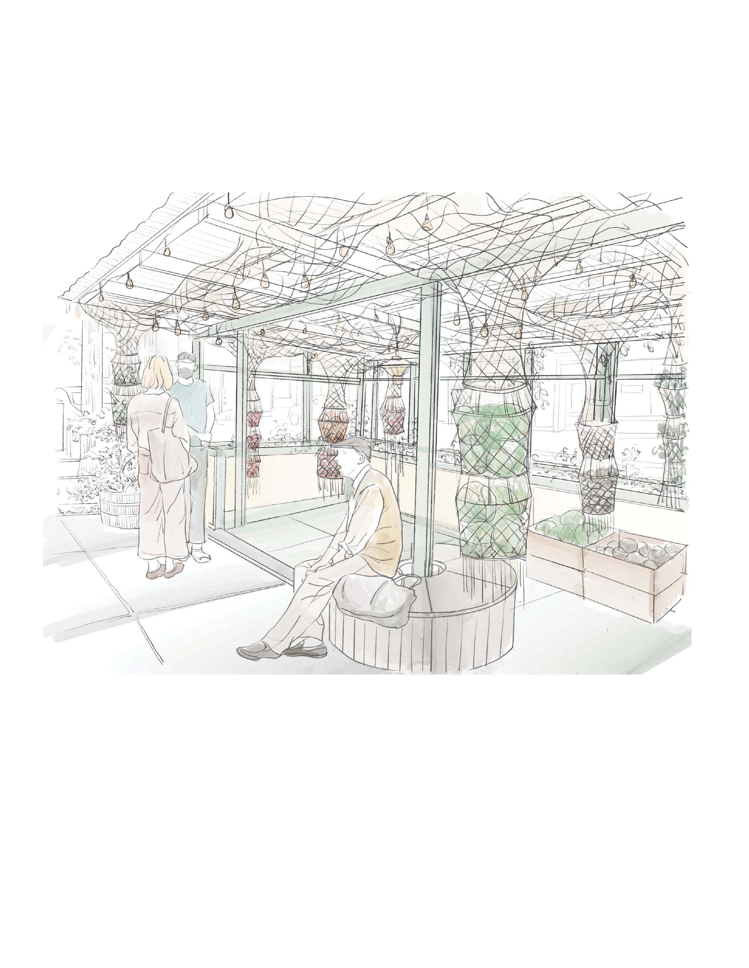 Undulating containers transform New York City’s soon-to-be-abandoned dining sheds into fresh air pantries, creating a dynamic system that ties together food, community, and local agriculture. Rather than static structures, the woven containers respond to seasonality and evolving food access needs, ensuring a flexible and adaptable framework for urban nourishment.