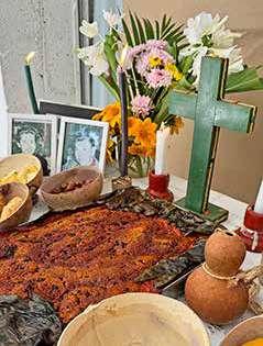 In the neighborhood of San Sebastián, for example, you'll find the eighth edition of the Mucbipollo Fair. The mucbipollo (another name for the mukbilpollo or pib) is the most representative dish of Janal Pixan— you can read all about it in this issue. During the fair, visitors can witness the ritual of burying and unearthing the pib, sample its different versions, and enjoy a family-friendly atmosphere filled with regional music and dance. There’s also the Pixán Pee’k: an event dedicated to pets, featuring a dog parade and special altars in their honor (peek’, pronounced peck, is the Maya word for “dog”).