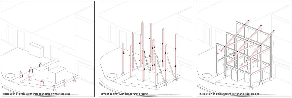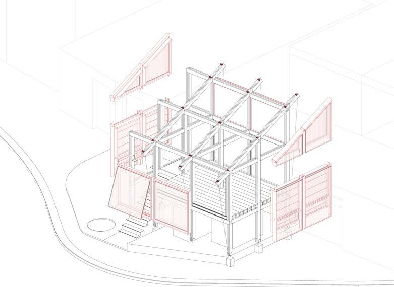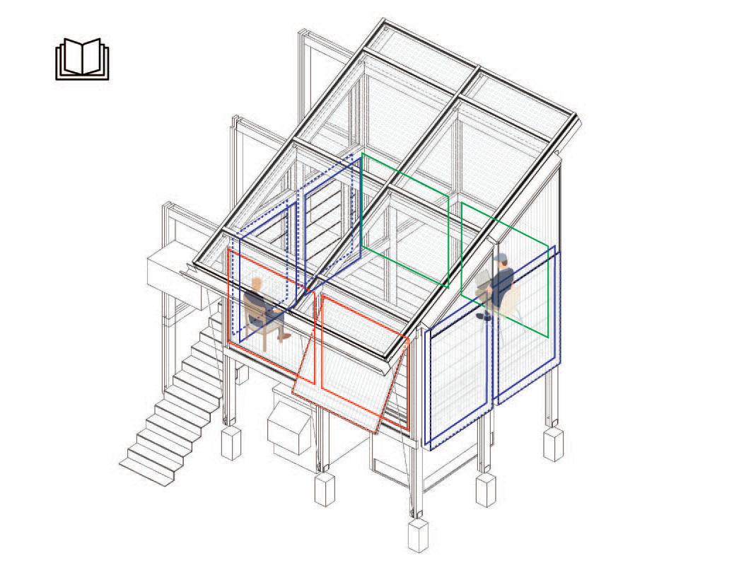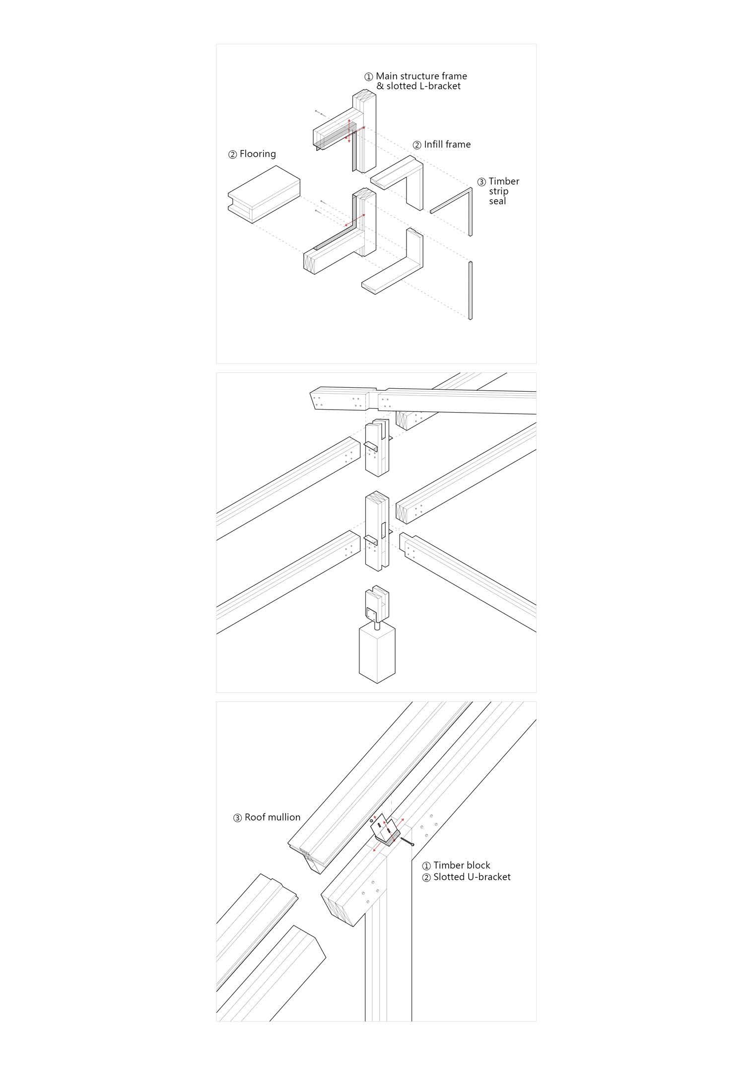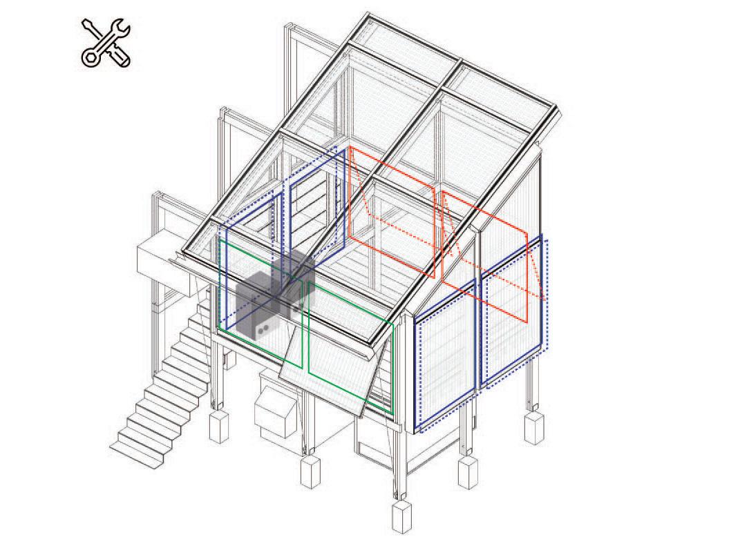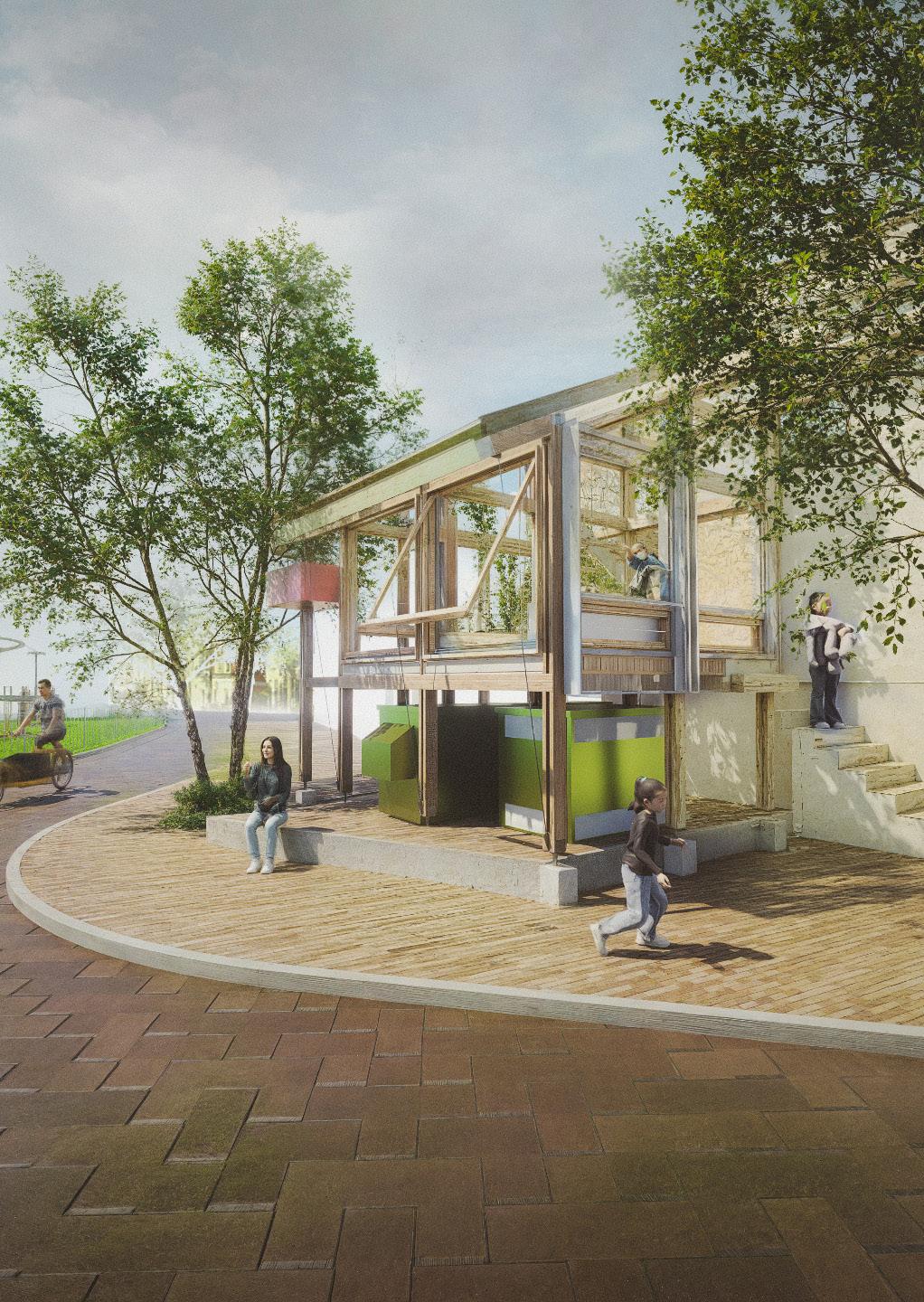 Conceived as a neighbourhood green hub, the design functions as a greenhouse and gathering space that can be assembled, disassembled, and relocated, showcasing how prefabrication can foster resilience, ecological integration, and social interaction within the community.