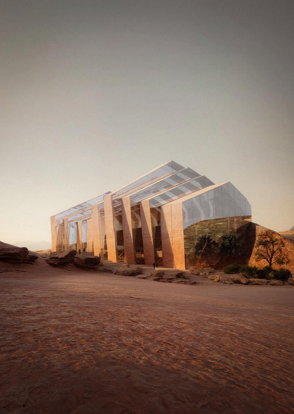 The project envisions a glass-structured visitor center in a national park, inspired by the dinosaur fossils housed within. The roof design translates the form of dinosaur ribs into fragmented elements, creating a symbolic connection to the site while also making the glass panels easier to transport and assemble. To ensure both elegance and feasibility, the design process focused on developing precise glass joints, followed by structural verification and Karamba optimization to balance architectural expression with structural performance.